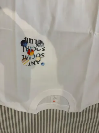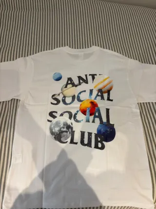 Camiseta de manga corta con estampado de planetas y el logo de la marca. - Diseño con temática espacial. - Logo Anti Social Social Club en letras grandes.