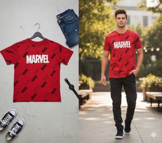 Camiseta de algodón con un diseño llamativo de logotipos de Marvel. - Estampado repetido de MARVEL en negro. - Logotipo grande de MARVEL en blanco en el centro. - Manga corta y cuello redondo. --> 134cm Hago envíos a toda la península, consulta tarifas por privado
