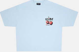 Camiseta de manga corta con un diseño llamativo de cerezas y el logo de Cold Culture. - Estampado frontal con cerezas rojas y el texto Cold Culture im hungry.... - Logo de la marca en la parte superior. - Color azul claro.