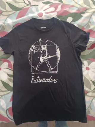 Camiseta negra con diseño de la banda Extremaduro. Nueva a estrenar - Estampado frontal. - Cuello redondo. - Manga corta. - Medidas en última foto