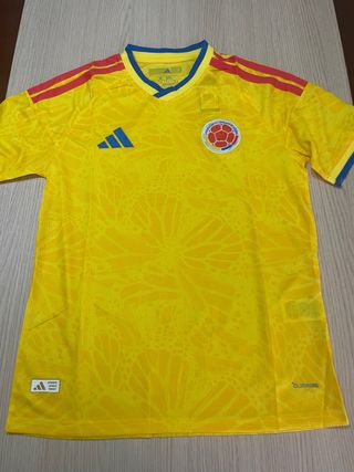 Camiseta de fútbol de Colombia, talla M. Diseño deportivo con detalles característicos. - Logo de Adidas. - Escudo de la selección colombiana. - Rayas deportivas en las mangas. - Tecnología ClimaCool.