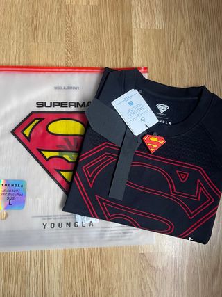 Compression el icónico logo de Superman de la marca YoungLA. - Diseño en color negro con detalles en rojo. - Estampado frontal del logo de Superman. - Cuello redondo y manga larga.