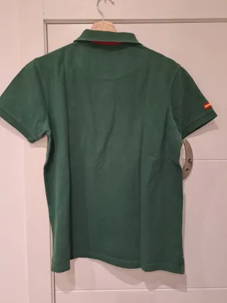 Polo de manga corta para hombre de la marca Toro. - Color verde. - Logo bordado en el pecho. - Detalle de bandera en la manga. - Cuello con botones. - En buen estado general.