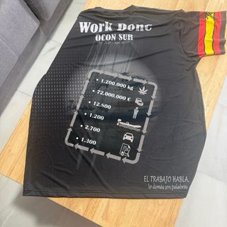 Camiseta conmemorativa de OCON SUR. Tejido de alta calidad deportivo, conocido como “segunda piel”. - Color principal negro. - Manga con bandera españa y escudo y la otra con lema e imagen de la virgen del pilar. Solo una unidad, totalmente exclusiva al pedirse bajo demanda.