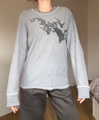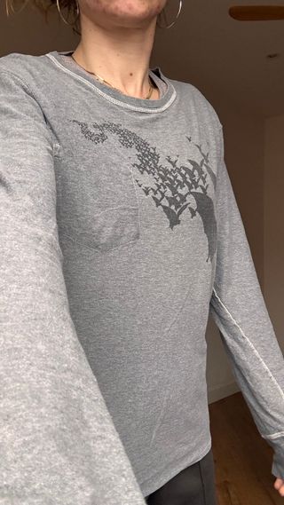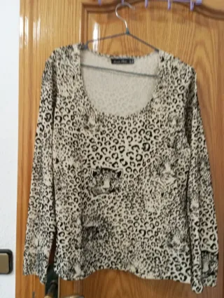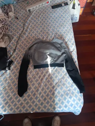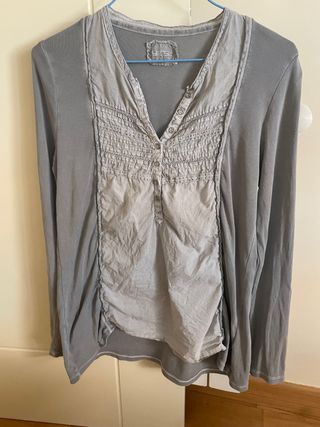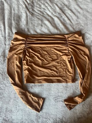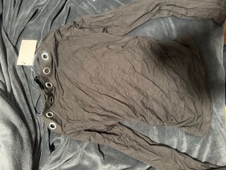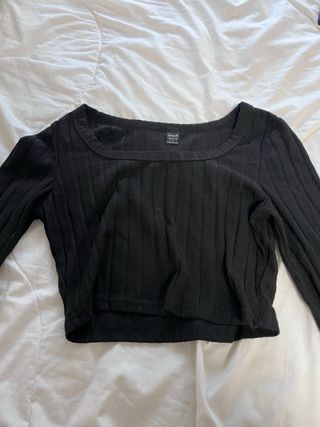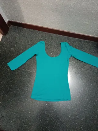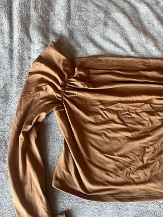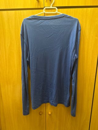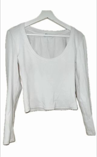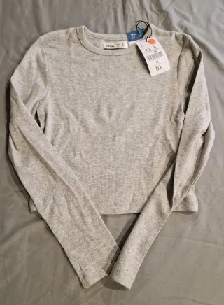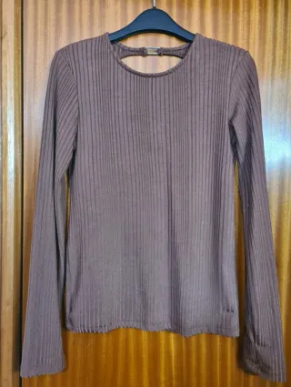 Camiseta de manga larga con tejido acanalado y apertura en la espalda. Usada una sola vez.