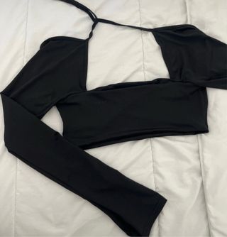 Crop top de manga larga con escote en pico. Su tejido es elástico y se adapta al cuerpo. • Largo: 40cm. - Diseño ajustado. - Tejido acanalado.