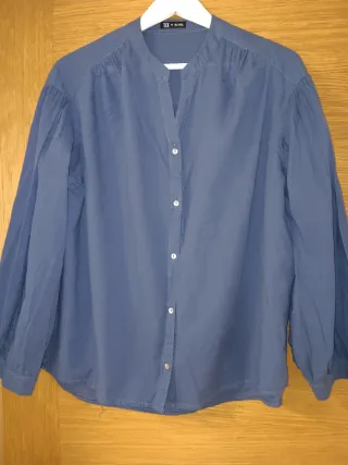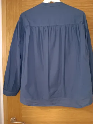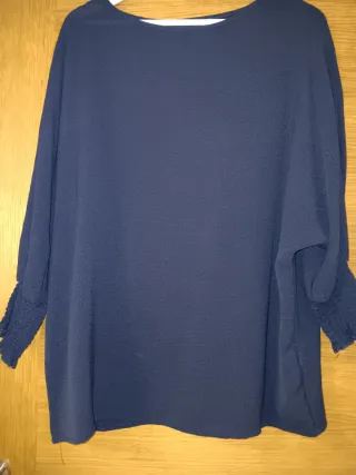 Blusa de manga larga en tono azul marino. - Cuello redondo con abertura. - Cierre de botones. - Mangas abullonadas. La talla es de Xl/XXl