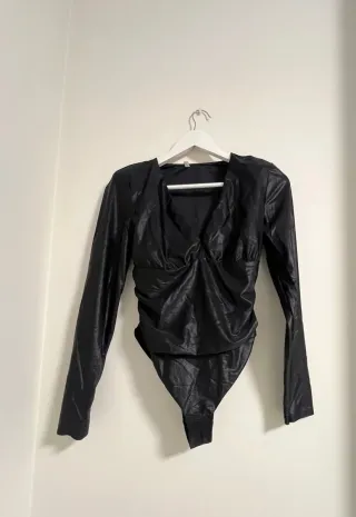 Body de manga larga con un diseño elegante y favorecedor. - Escote en V con fruncido central. - Mangas largas. - Corte ajustado. Me lo compré y nunca lo utilizé.