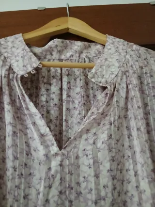 Blusa de Zara con un estampado floral vibrante y romántico. Perfecta para añadir un toque de color a tu armario. - Diseño con volantes en el pecho y hombros. - Mangas largas abullonadas con puño. - Corte ligeramente entallado en la cintura.