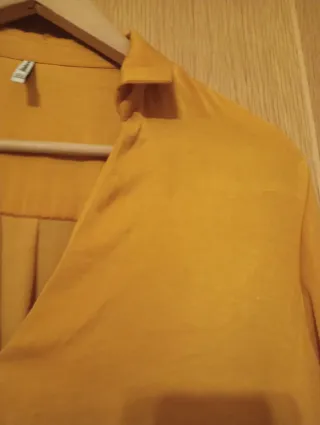 Camisa de manga larga en un vibrante color amarillo. Su diseño es ligero y fluido, ideal para cualquier ocasión. - Cuello en V cruzado. - Mangas amplias. - Tejido con textura sutil.