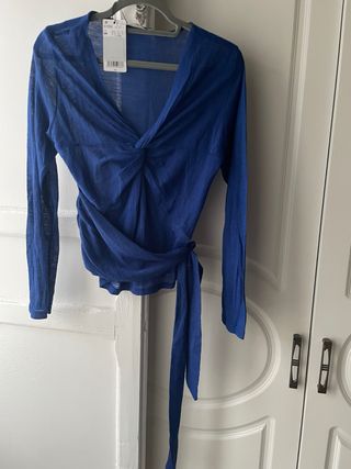Camiseta de manga larga con un diseño cruzado y atado. - Tejido ligero y vaporoso. - Detalle de nudo en la parte delantera. - Cierre con lazada lateral.