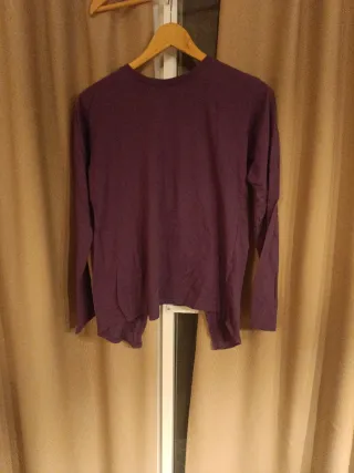 Camiseta de manga larga en color morado. Es una prenda cómoda y versátil. - Cuello redondo. - Manga larga. - Tejido suave. - espalda descubierta