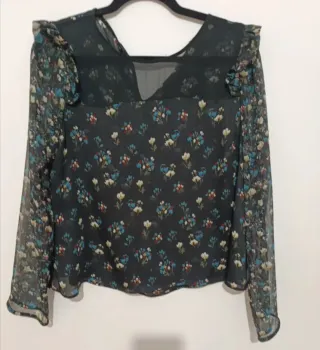 Blusa de Zara con un bonito estampado floral. Es ligera y tiene un diseño muy femenino. - Mangas largas y transparentes. - Volantes en los hombros. - Escote en V.