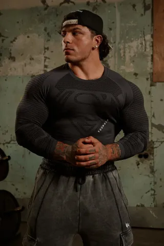 Camiseta de compresión con diseño inspirado en Superman. - Tejido elástico y ajustado. - Estampado frontal del logo. - Mangas largas con textura. - Factura Original - Envío al recibirla
