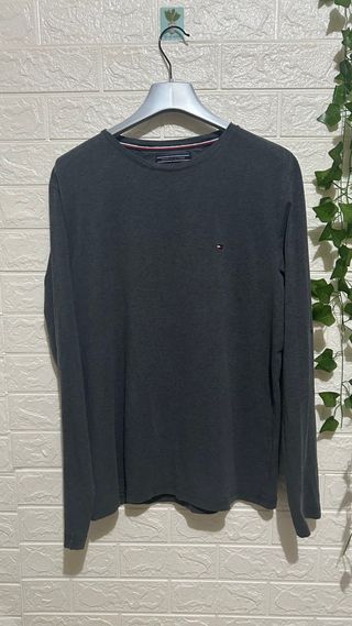 Camiseta de manga larga en color gris de la marca Tommy Hilfiger. Presenta un pequeño logo en el pecho. - Cuello redondo. - Puños elásticos.