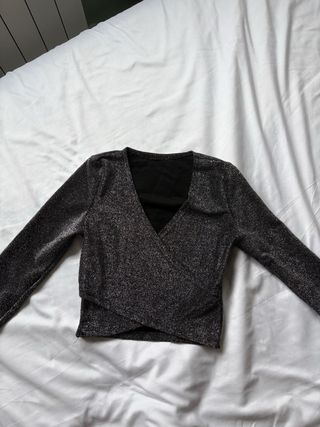 Top de fiesta con un diseño cruzado y manga larga. Su tejido brillante le da un toque especial. - Diseño cruzado. - Manga larga. - Tejido brillante.