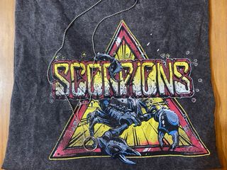 Camiseta gris Scorpions con detalle de cadena al cuello -Efecto washed -Cómoda y ancha, holgada -Estilo cropped -Talla L pero la uso como una camiseta anchita de talla S Medidas Ancho de pecho: 57 Largo: 53 Manga: 16