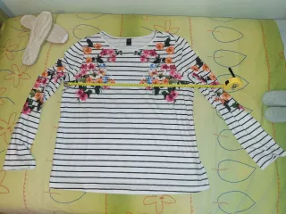 Camiseta rayas flores manga larga Talla L