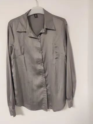 Camisa SHEIN satén plateada