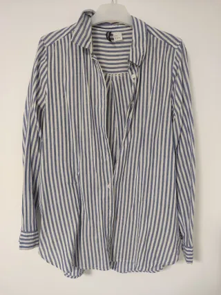 Camisa manga larga rayas azul y blancas, talla M de BERSHKA