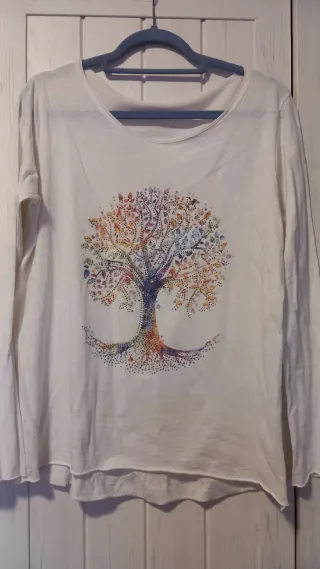 ▶️DE REGALO, A PARTIR DE 20€ DE COMPRA (EXCEPTO LIBROS) Un sólo regalo 🎁 por pedido 📍Camiseta de manga larga de algodón, con un bonito estampado de árbol de la vida en la parte delantera. El diseño está lleno de detalles y colores vibrantes. 📍Es a estrenar sin etiqueta. 📍 TALLA M/L - Material: Algodón. - Diseño: Árbol de la vida multicolor. - Mangas: Largas. - Cuello: Redondo.