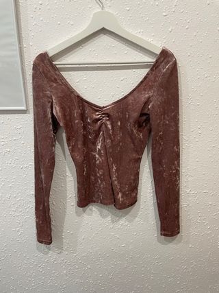 Camiseta de manga larga con un tacto suave y agradable. - Material: terciopelo. - Diseño con escote en V. - Detalle fruncido en la parte delantera.