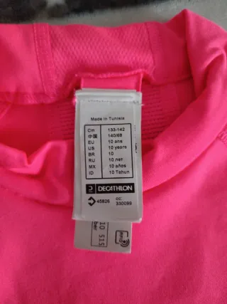 Camiseta térmica de manga larga en color rosa.talla 10 años - Cuello alto. - Logo de la marca en la manga.