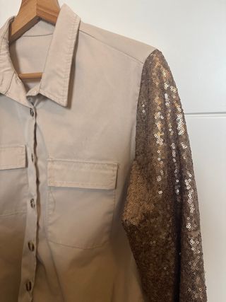 Sobrecamisa Beige con Mangas Doradas Lentejuelas