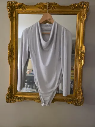 Body de manga larga con cuello drapeado. Diseño elegante y versátil. Tejido suave y cómodo.