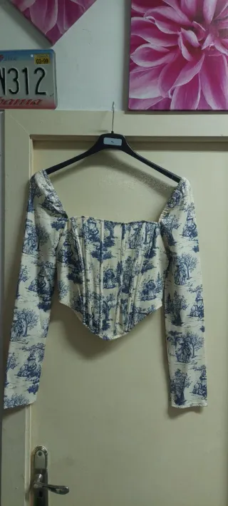 Bonita camiseta con diseño de corsé y estampado. - Mangas largas. - Escote cuadrado. - Estampado de estilo clásico.