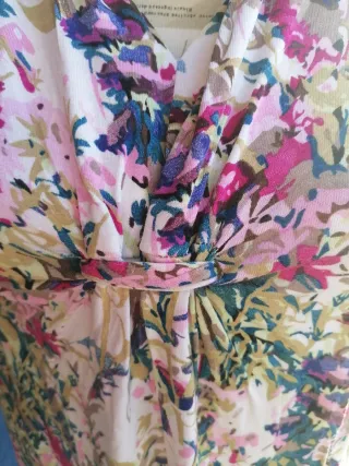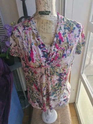 Camiseta con un bonito estampado floral y escote cruzado. - Medidas: hombros 44cm, largo 54cm. - Diseño con fruncido en el pecho. - Mangas cortas. - Tejido ligero y fluido.