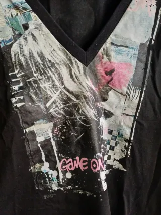 Camiseta con tejido brillante y estampado. Diseño con hilos de lurex. Talla XL Nuevo, sin estrenar