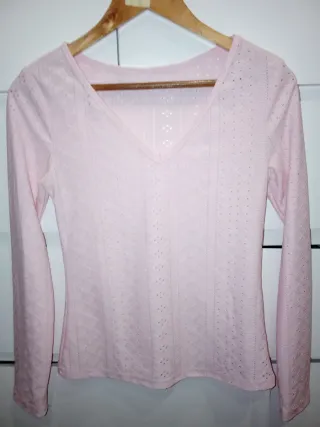 Camiseta de manga larga con un diseño delicado y tejido calado. - Cuello en pico. - Manga larga. - Tejido con pequeños calados. -NO HAGO ENVÍOS-