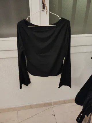 Top negro manga larga escote cuadrado