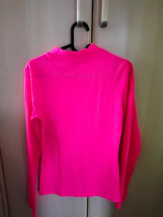 Camiseta de manga larga con un llamativo color rosa fosforito. - Cuello alto. - Manga larga. - Tejido acanalado.