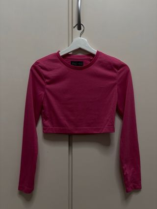 Camiseta crop top de manga larga en un vibrante color fucsia.