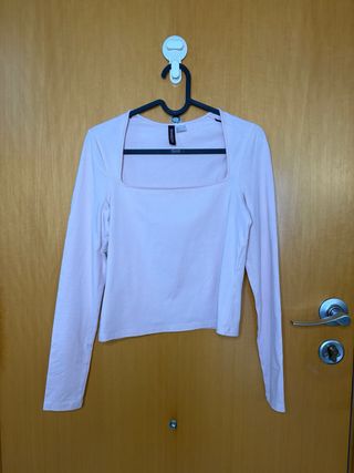 Blusa H&M manga larga escote cuadrado rosa S