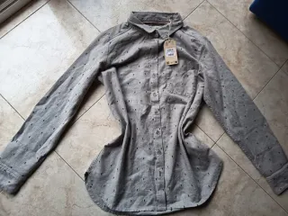 Camisa de manga larga con un discreto estampado. - Cuello clásico. - Cierre de botones. - Queda preciosa y es para cualquier ocasión