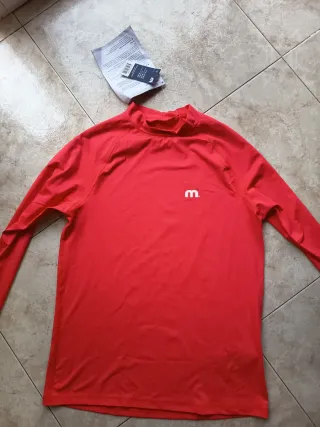 Camiseta de manga larga con cuello alto. El logo de la marca está en el pecho. - Color rojo vibrante. - Diseño de cuello alto. -Talla M/L