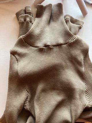 Camiseta de Zara de manga larga con un diseño acanalado y un detalle de apertura en la espalda. - Tejido acanalado. - Cuello alto. - Abertura en la parte trasera.