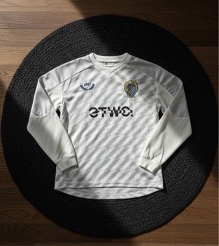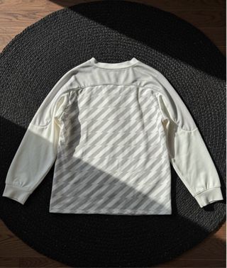Camiseta de manga larga con un diseño moderno y deportivo. - Patrón de rayas diagonales en tonos grises y blancos. - Cuello redondo. - Puños elásticos.