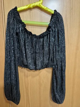Top con un diseño brillante y moderno, perfecto para destacar. - Manga larga. - Escote elástico. - Tejido con acabado metalizado.