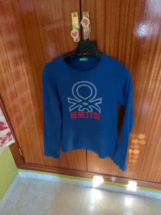 Camiseta de manga larga con el logo de Benetton. - Color azul vibrante. - Estampado blanco y rojo en el frontal. - Talla 11-12 años. - Muy buena calidad -Como nueva