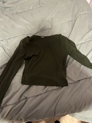 Top de manga larga en color verde. Tiene un escote en pico. - Manga larga. - Escote en pico.