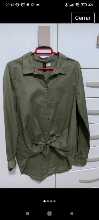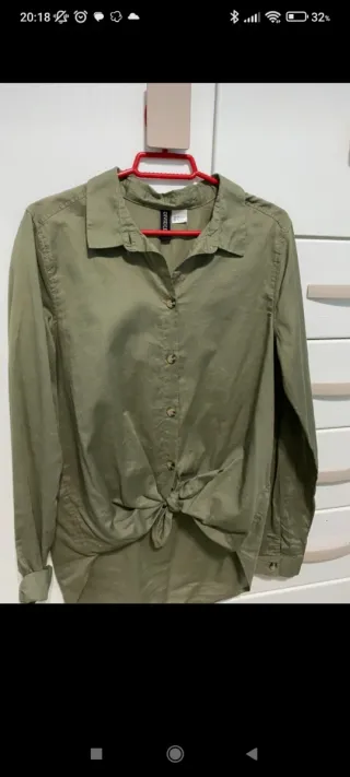 Camisa de manga larga con un diseño anudado en la parte delantera. Es una prenda versátil y cómoda. Sin el nudo, es una camisa de corte normal. - Cierre de botones. - Cuello camisero. - Puños abotonados.