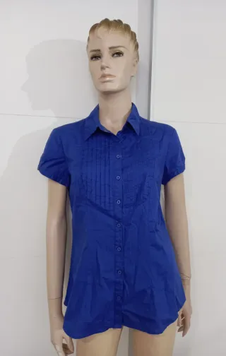 Camisa de manga corta con cuello camisero. Algodón. Pecho 48 cm×2 Largo 68 cm - Detalle de plisados en la parte delantera. - Cierre de botones. - Corte entallado.