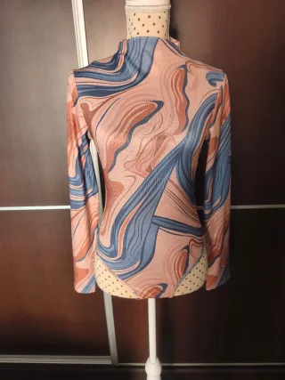 Body con un diseño llamativo y moderno. - Cuello alto. - Manga larga. - Estampado abstracto en tonos rosas y azules. - Tejido acanalado.