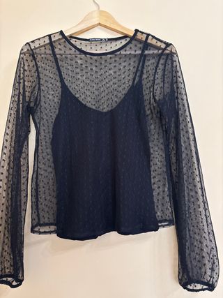 Camisa Zara Negra Manga Transparente