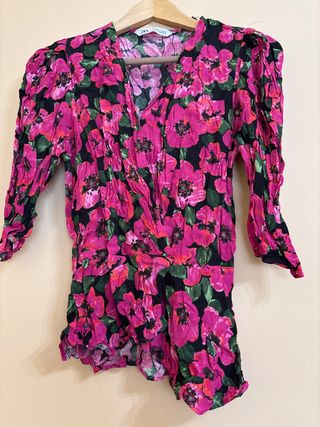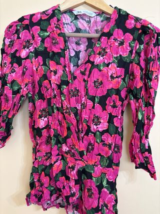 Blusa Zara floral rosa y negra talla S