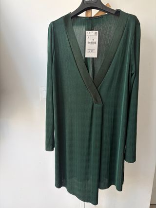 Camiseta larga Zara verde botella.
